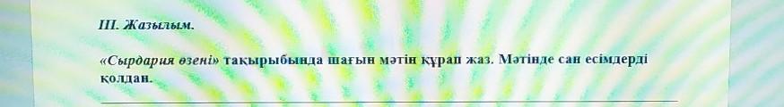 «Сырдария өзені такырыбында шағын мәтін қират и аз. Мәтінде сан есімдерді