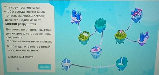 Ответ: два моста на розовый остров внизу самые нижние острова и зелёный тоже к розовом Объяснение:2 моста от двух островов снизу, последний мост с права к розовому