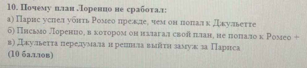 б) письмо Лоренцо, в котором он излагал свой план, не попало к Ромео
