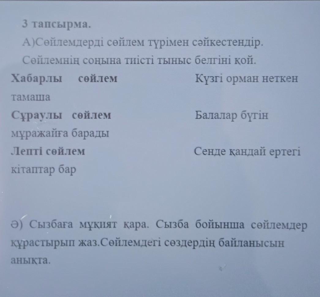 А)Сөйлемдерді сөйлем түрімен сәйкестендір.