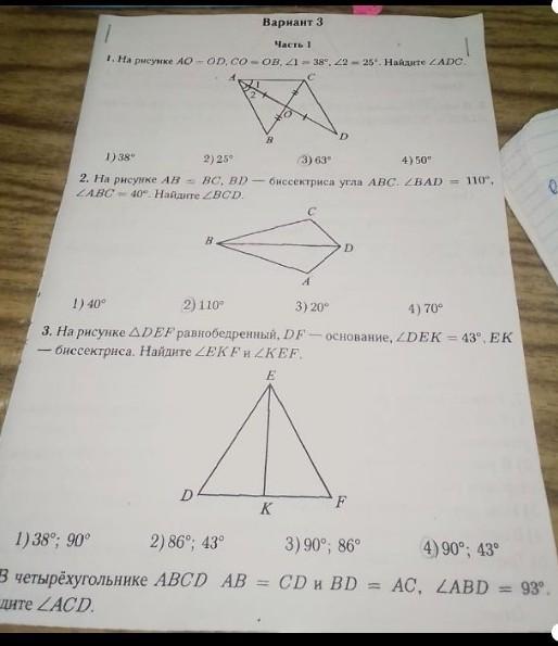 Даю 90 баллов.Решите до 12:00 по МСК, пожалуйста.Контрольная по геометрии 7 класс. Нужны не только ответы, решения тоже(можно краткие, просто чтобы понять и проверить.