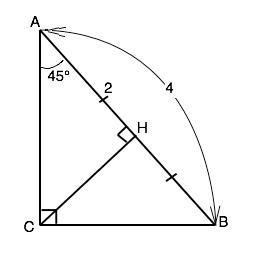 В равнобедренном прямоугольном треугольнике высота, проведенная из прямого угла, делит его на два равных прямоугольных треугольника равными катетами. АН=ВН=СН=2.