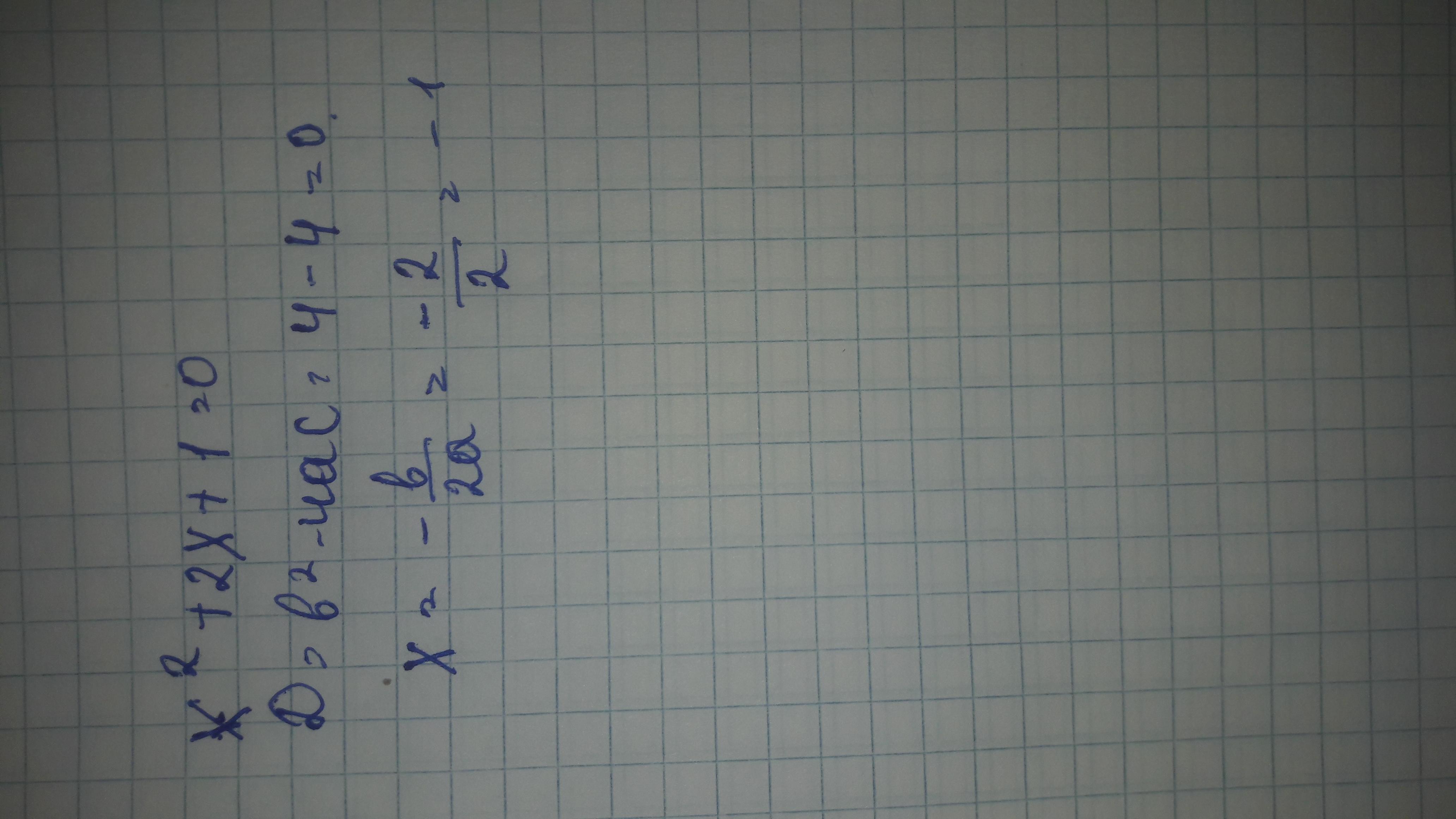 Ответ:формула:b2-4 ^a^c=4-4=0 Дискриминант менше 0 значет будет 1 корен корен будет равен : -1