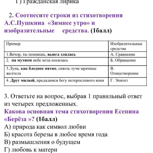 Соотнесите строки из стихотворения А.С.Пушкина «Зимнее утро» и изобразительные средства. (1балл)