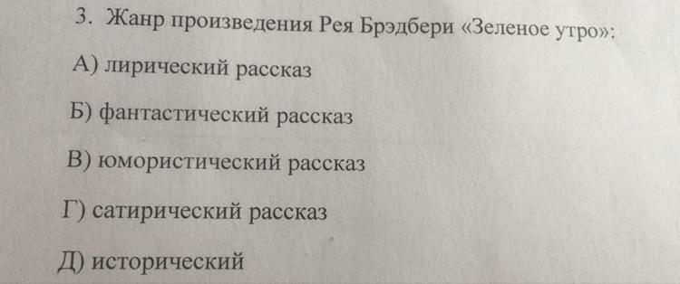 3. Жанр произведения Рея Брэдбери «Зеленое утро»: