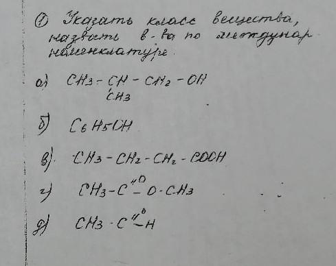 Указать класс вещества, назвать вещества по международной номенклатуре (а, б, в, г, д)
