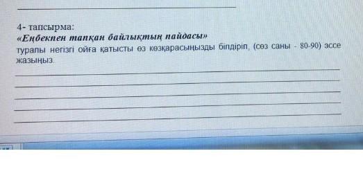 Еңбек бұл әр адамның өзінің адал жұмыс істегені.Қазақ атамыз бұрынан бері Еңбектің наны тәтті жалқаудың жаны тәтті деп еңбек туралы талай мақалдар жазып халықтың көзін ашумен болды.Еңбек істеген адамның бойында жалқаулық жойылып кетеді және оның бойына жақсы қасиеттер ене бастайды.Жалпы еңбектің мәні зор,жалқауланбай,ерінбей, тер төгіп жұмыс істеген адам ғана еңбектің нанын жейді.Өйтені ол өзі жұмыс істеп тер төкті.Еңбек физикалық тұрғыдан да адам денсаулығына пайдасы көп. Бірақ күні түні тоқтамай еңбек етудің қажеті жоқ.Сондықтан Еңбек етсең ерінбей тойады қарның тіленбей.