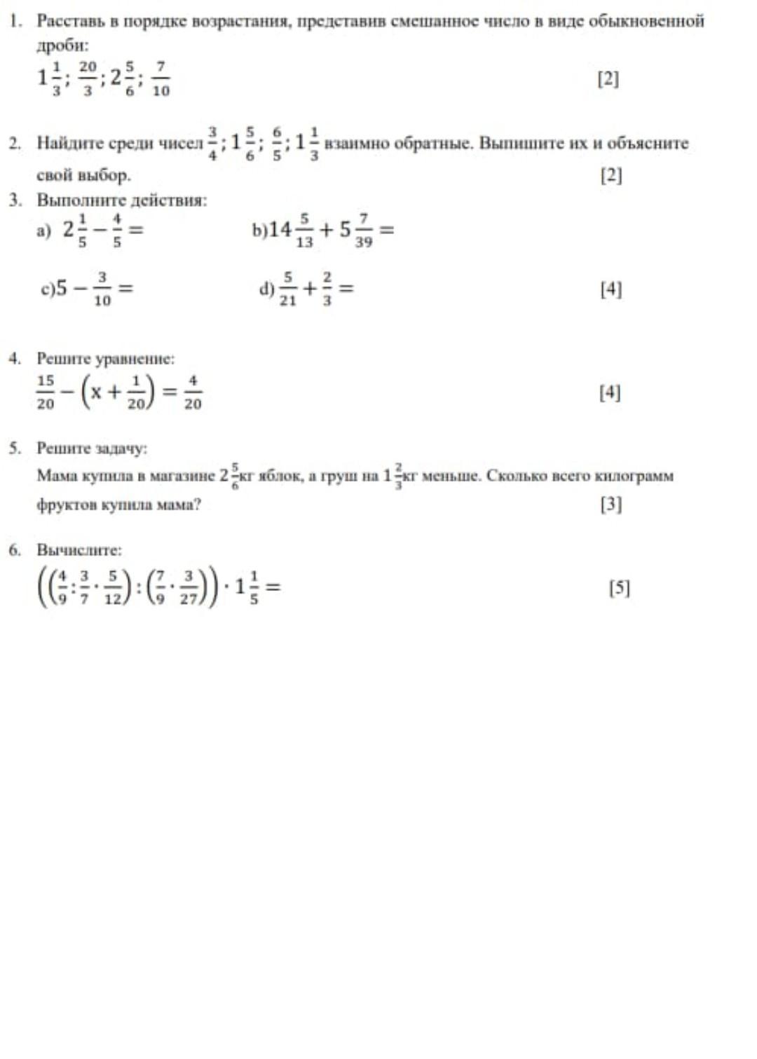 1. 7/10;1 1/3; 2 5/6; 20/3