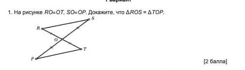 ΔROS = ΔTOP по двум сторонам и углу между ними (по первому признаку равенства треугольников)