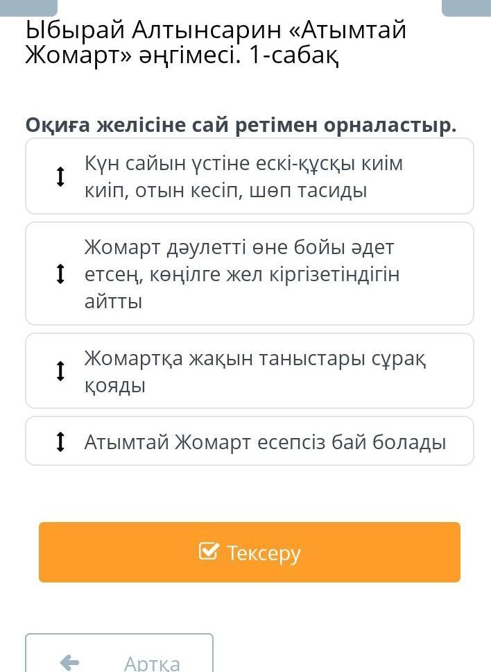 киім киіп,отын кесіп,шөп тасиды.Жомартқа таныстары сұрақ қояды.Жомарт дәулетті өне .........