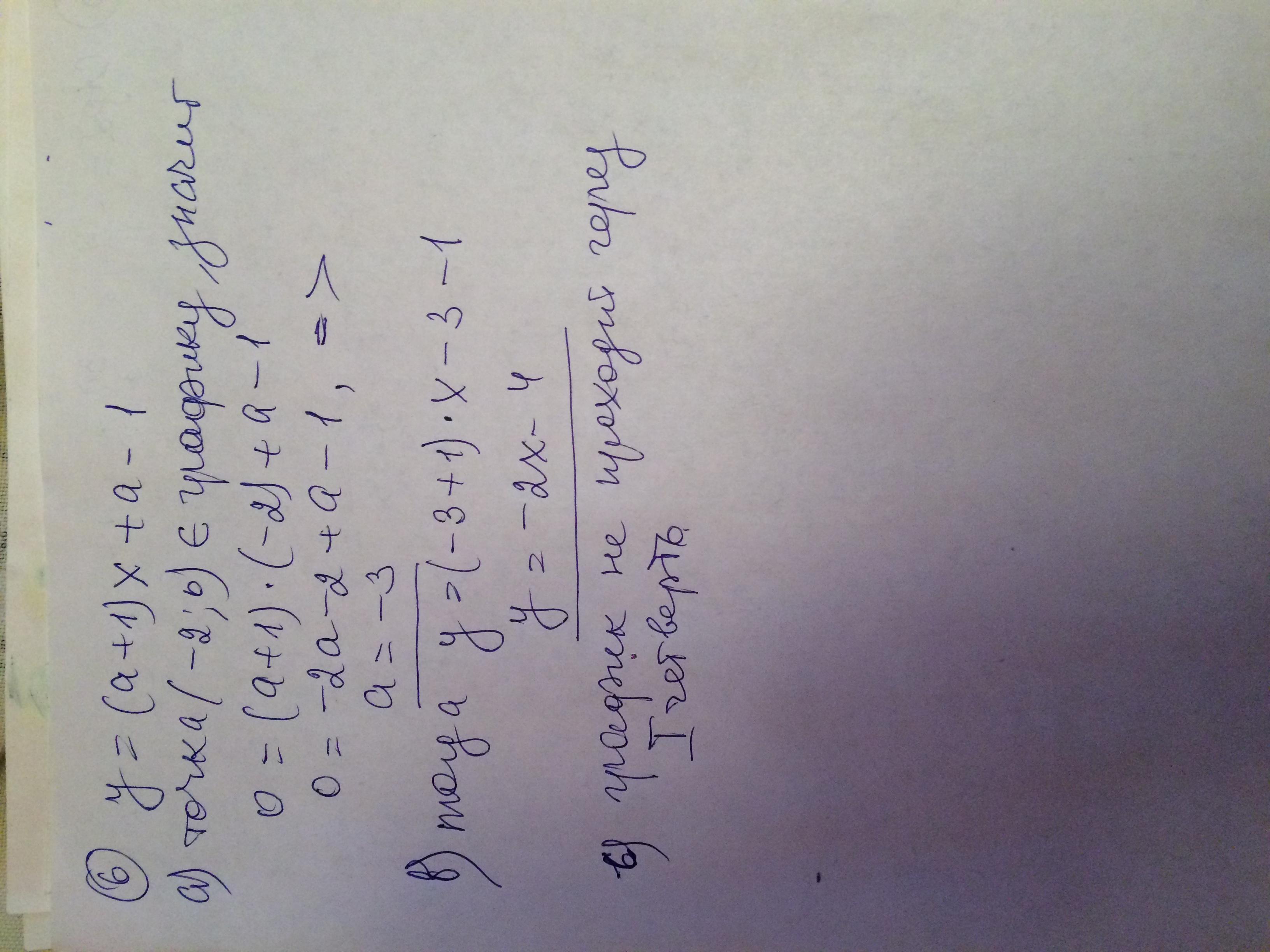 СРОЧНО 6.График функции, заданной уравнением у=(а+1)х+а-1 пересекает ось абсцисс в точке с координатами (-2;0).