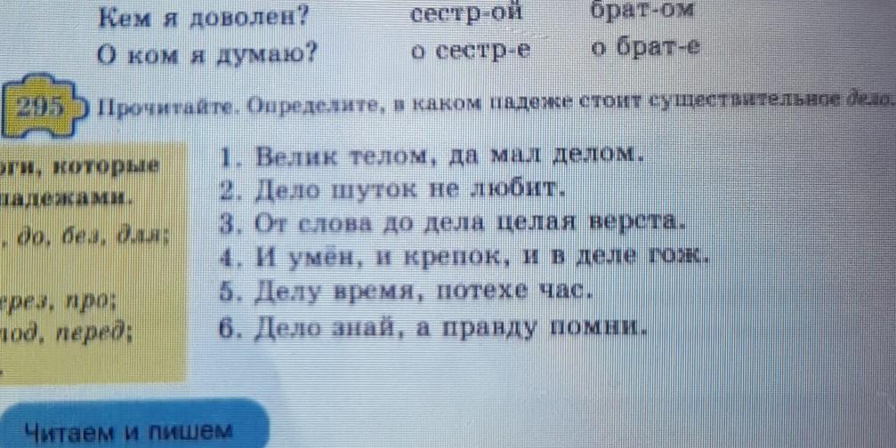 295) Прочитайте. Определите, в каком падеже стоит существительное дело.