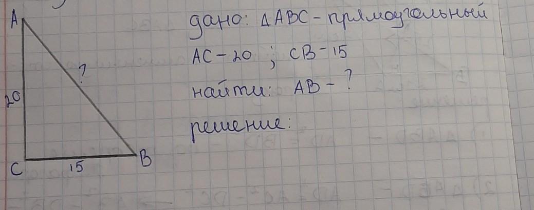Дано: ∠ACB = 90°, AC = 20, BC = 15