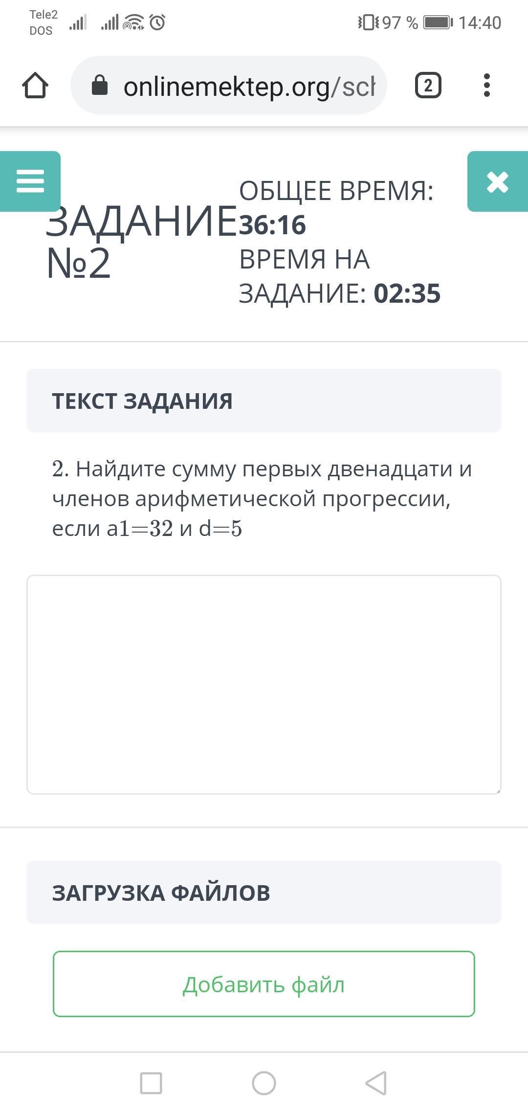 а¹ = 32; а²= а¹ + d= 32 + 5= 37;