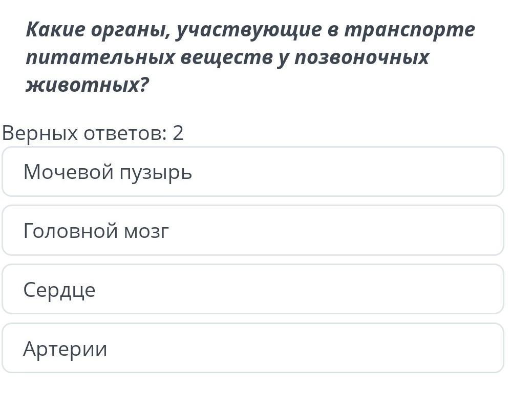 СРОЧНОКакие органы участвуют в транспорте питательных веществ у позвоночных животных в верных ответов в мочевой пузырь головной мозг сердце артерии