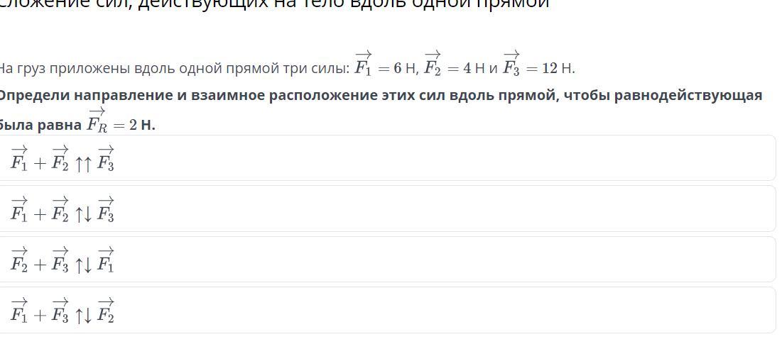 Навруз приложены вдоль одной прямой три силы F1 равно 6 H F2 равно 4 hf3 равно 12 а определите направление и взаимное расположение этих сил вдоль прямой чтобы равнодействующая была равна F R равно 2 H