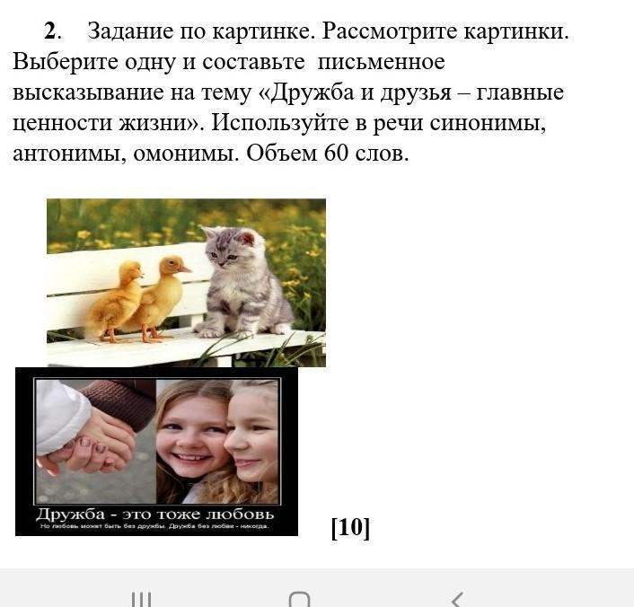 2. Задание по картинке. Рассмотрите картинки. Выберите одну и составьте письменное высказывание на тему «Дружба и друзья – главные ценности жизни». Используйте в речи синонимы, антонимы, омонимы. Объем 60 слов.
