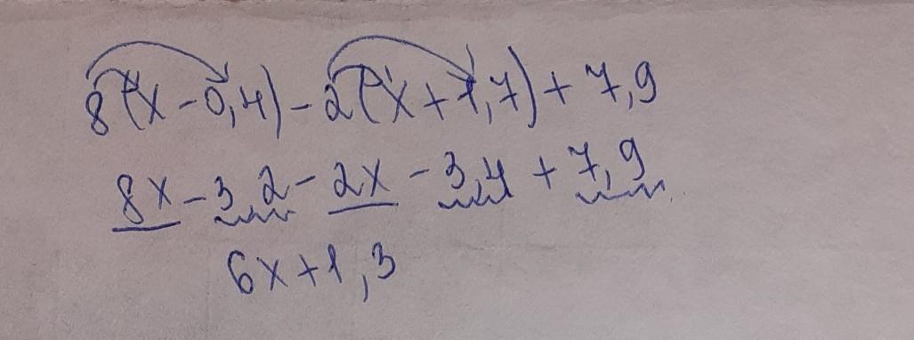 8( х – 0,4 ) – 2( х + 1,7 ) + 7,9 .