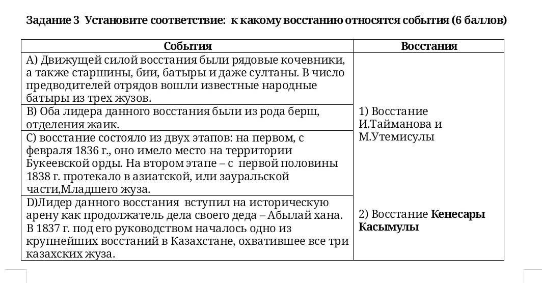 3 Установите соответствие: к какому восстанию относятся события (6 баллов)