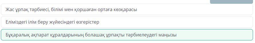Жас ұрпақ тәрбиесі, білімі мен қоршаған ортаға