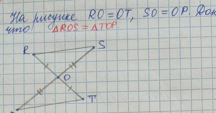 ΔROS = ΔTOP по двум сторонам и углу между ними (по первому признаку равенства треугольников)