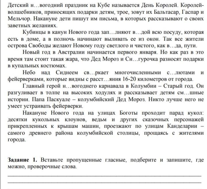 Задание 1. Вставьте пропущенные гласные, подберите и запишите, где можно, проверочные слова.