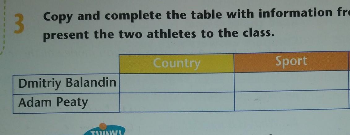 copy and complete the table with information from the text. Then present the two athletes to the class