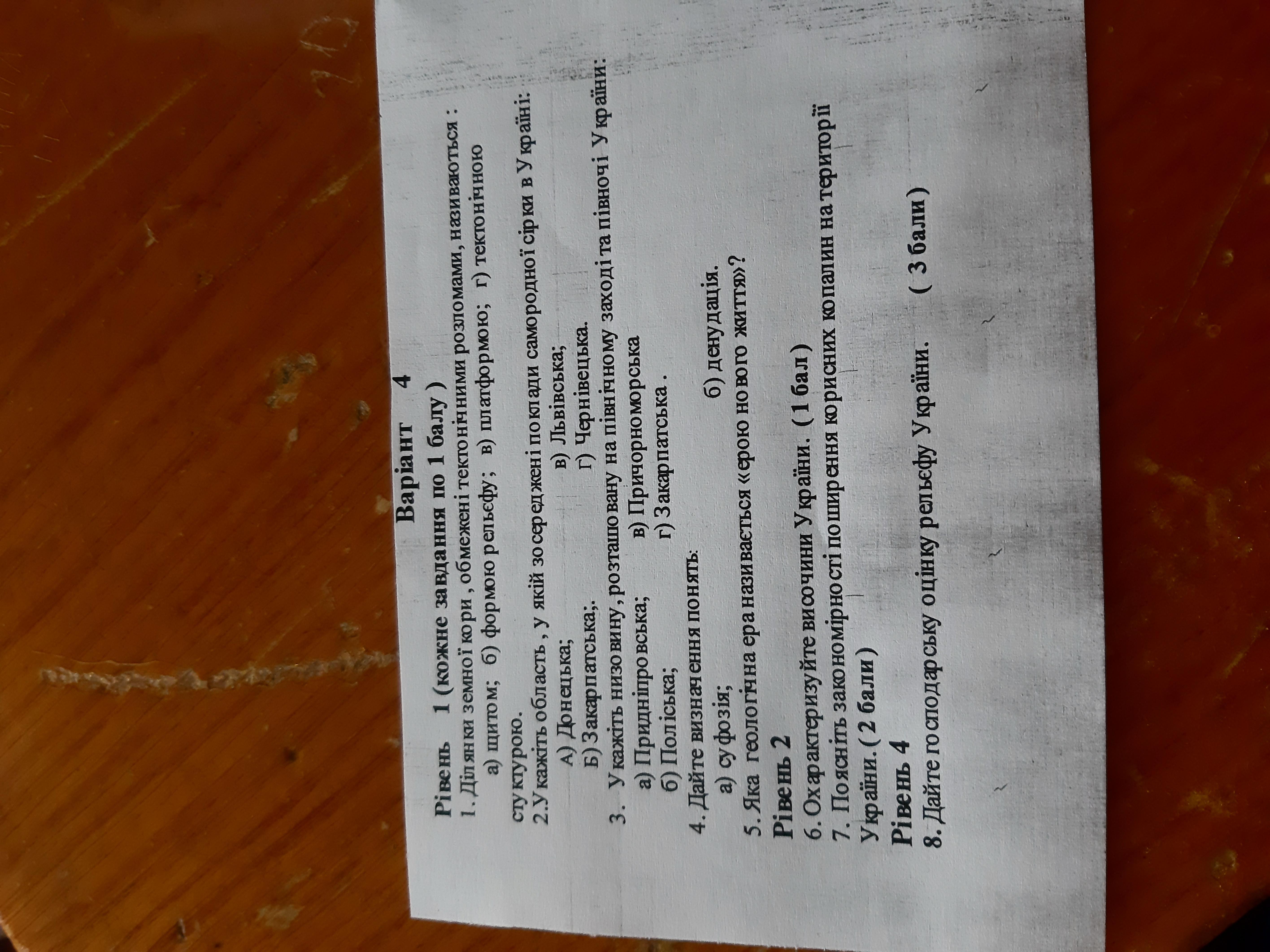 8. Завдяки вигідному фізико-географічному положенню область володіє сприятливими в цілому природними умовами і ресурсами:- рівнинний рельєф сприяє розвитку всіх видів господарської діяльності;- помірно континентальний клімат позитивно вплинула на заселення території та її економічне використання;- багаті гумусом чорноземні грунти створюють сприятливі умови для розвитку сільського господарства; - незначні водні ресурси ускладнюють освоєння природно-ресурсного потенціалу області;- значні за запасами і різноманітні за видами корисні копалини, навпаки, полегшують освоєння території і одночасно погіршують природне середовище.