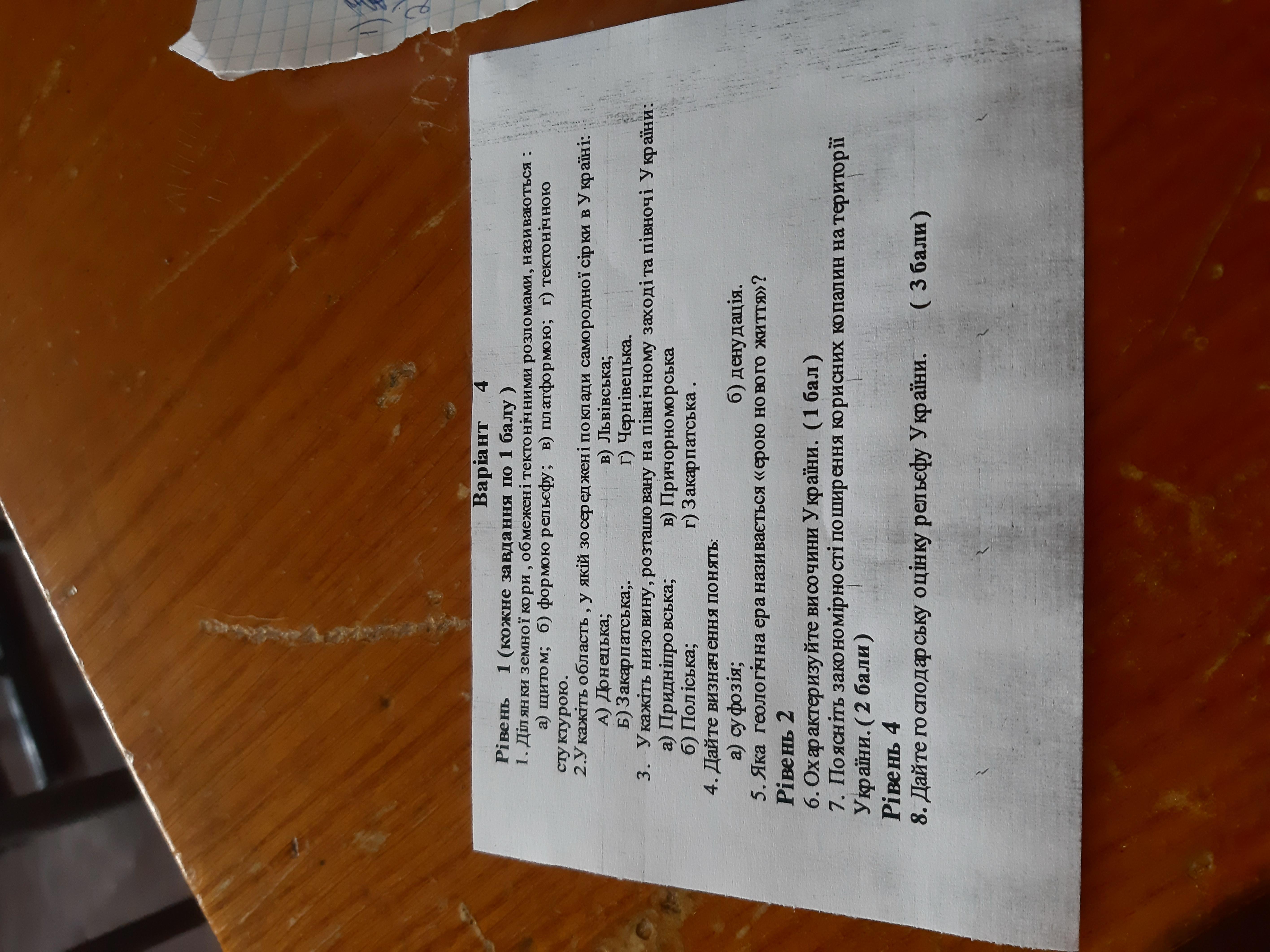 8.Україна на 95% складається з низовин, лише 5% - гірські системи. На південному заході знаходяться Карпати ( найв точка Говерла 2061м), у південній частині Криму - Кримські гори (найв. точка Роман-Кош - 1545м). Гори є відносно невисокі.