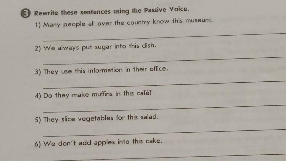 3 Rewrite these sentences using the Passive Voice.