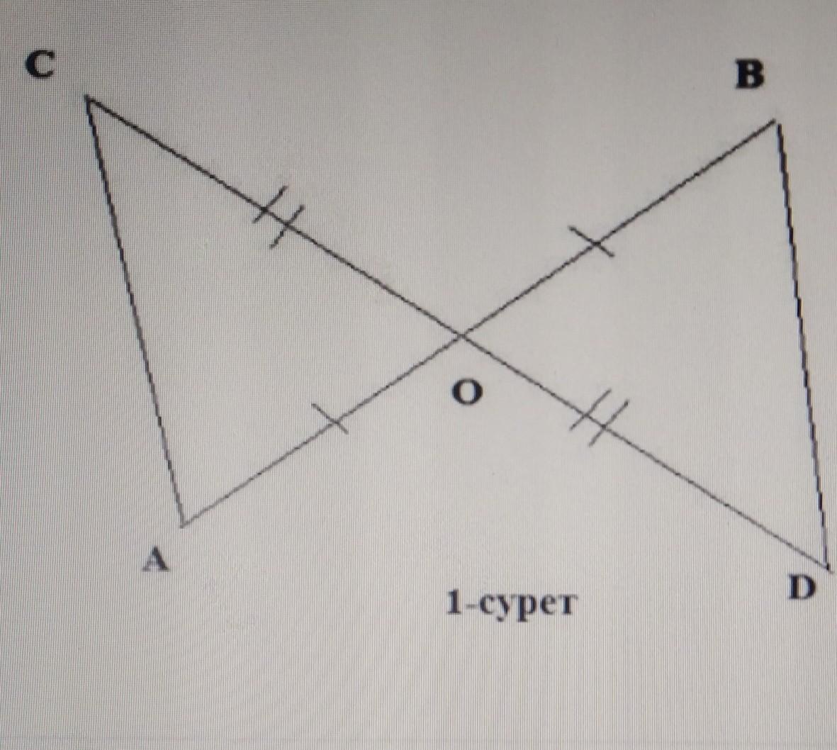По одному из равенств треугольника треугольник АOC равен треуг. BOD