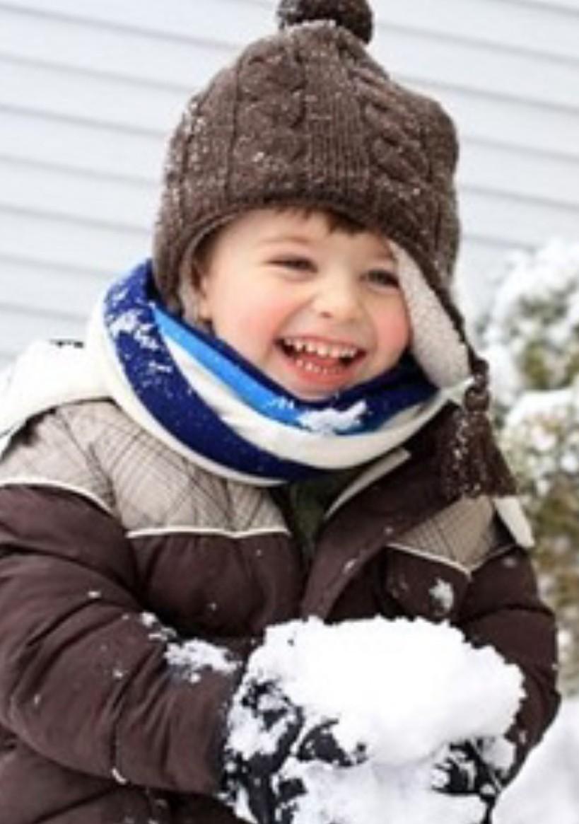 Фотография радостного мальчика,который беззаботно играется со снегом,он видимо очень ценит зимнее время года.