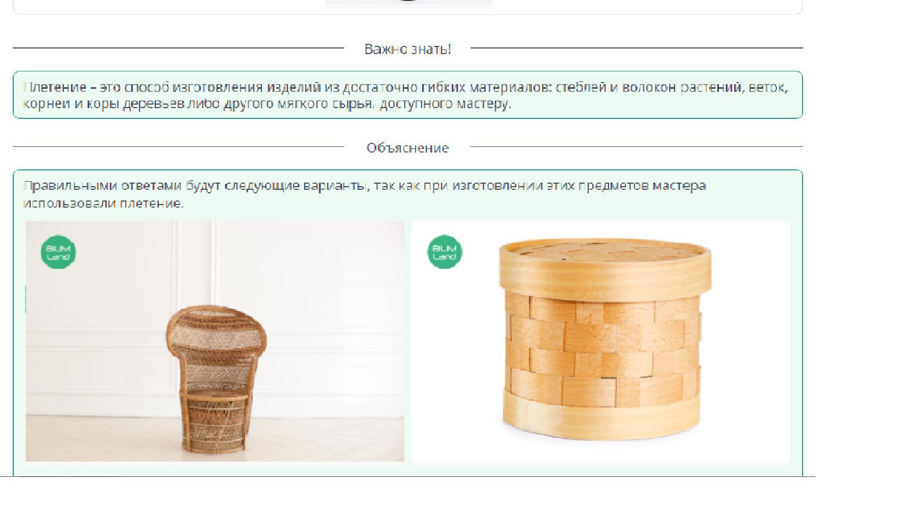 Сам вопрос: Выбери иллюстрации изделий, выполненных способом плетения.