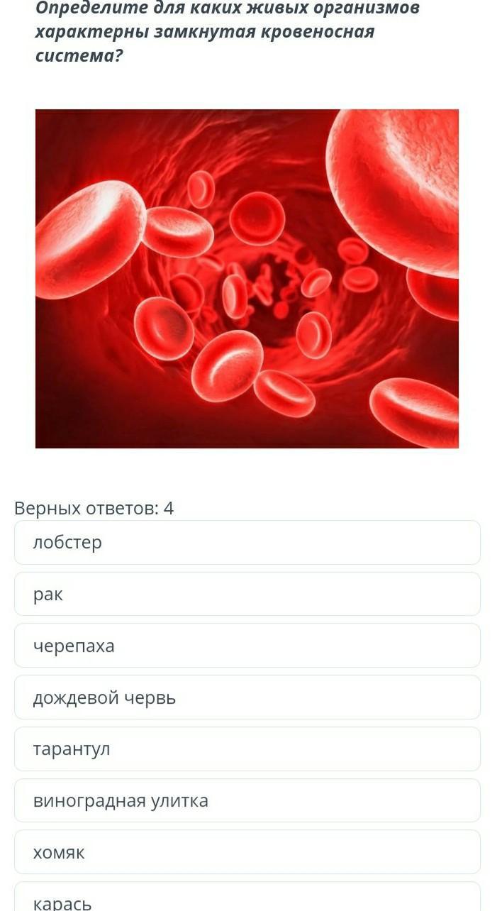 Определите для каких живых организмов характерны замкнутая кровеносная система?