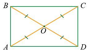 диагонали прямоугольника в точке пересечения делятся пополам,