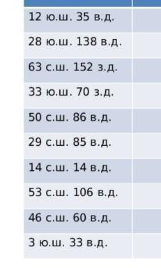 !!! Запомни, долгота это вертикальные линии на карте, а широта - горизонтальные. По бокам карты указаны градусы. Внизу и наверху для долготы, а справа и слева для широты.