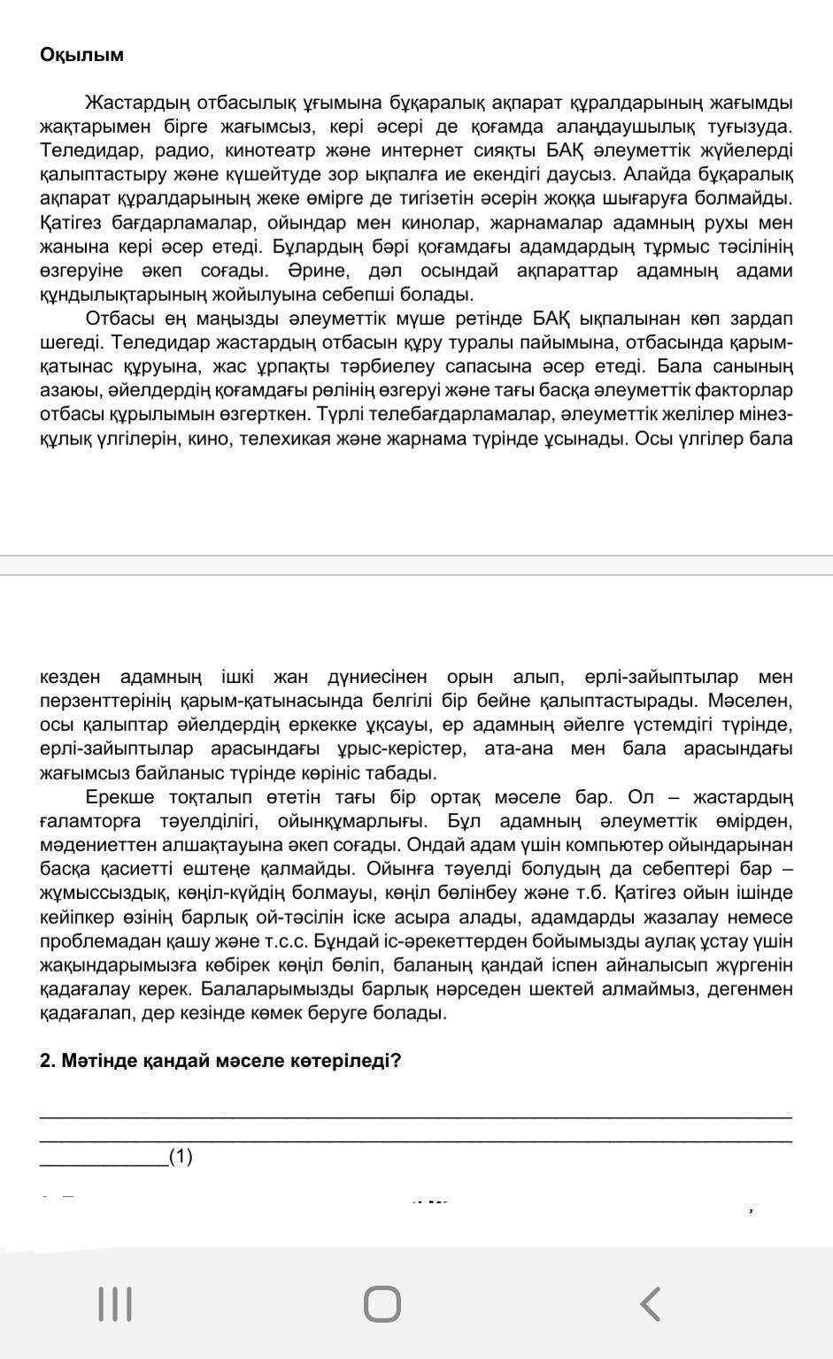 Көтерілген мәселе;Теледидар жастардың отбасын құру туралы пайымына, отбасында қарым-қатынас құруына,жас ұрпақты тәрбиелеу сапасына әсер етеді