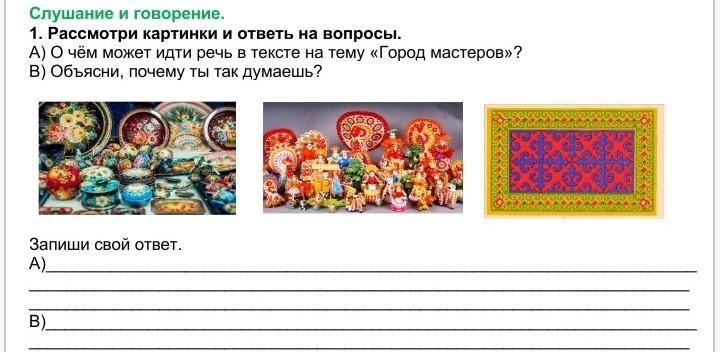 В) В заголовке текста говорится о "Городе Мастеров", а на изображениях изображены разные украшения и узоры.