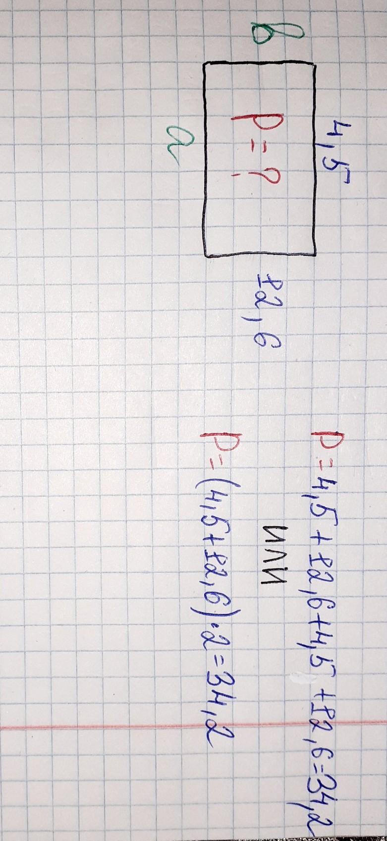 Стороны прямоугольника равны а и в . Запиши периметр прямоугольника буквенным выражением. Вычисли периметр прямоугольника, если а = 4,5 см и в = 12,6 см.