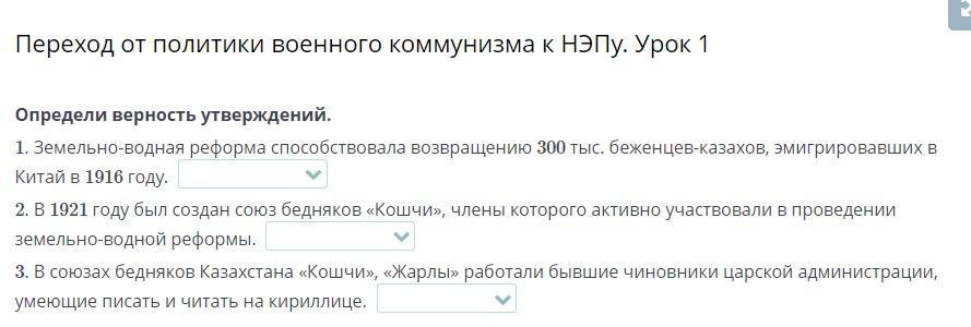 3. В союзах бедняков Казахстана «Кошчи», «Жарлы» работали бывшие чиновники царской администрации, умеющие писать и читать на кириллице.