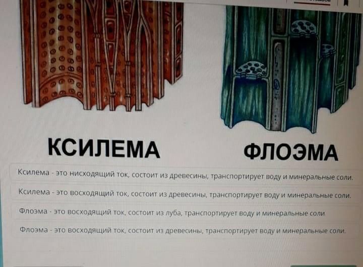 Ксилема это восходящий, ну правильней водопроводящая ткань, а флоэма это Луба по моему.