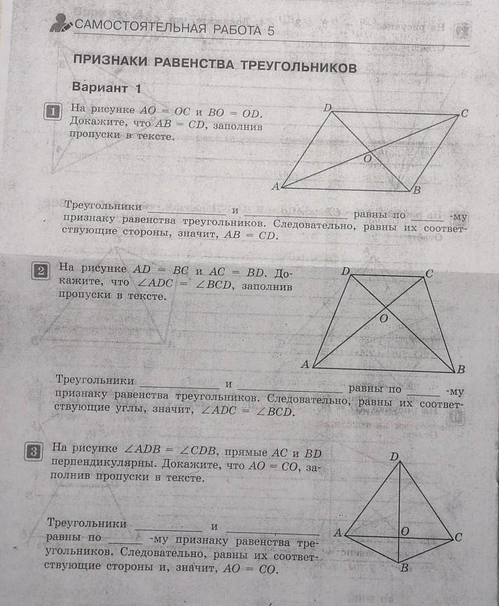 1)Треугольники AOB и DOC равны по 3 признаку равенства треугольников