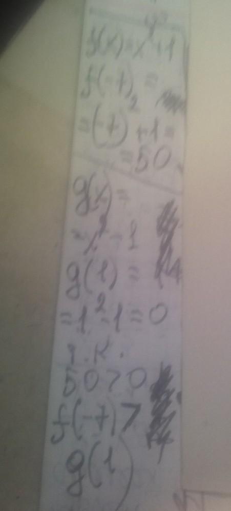 Функции заданы формулами f(x)=x2+1 и g(x)=x2−1. Сравни f(−7) и g(1).
