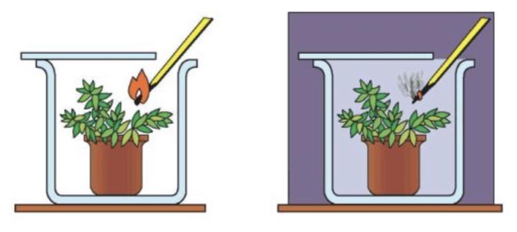 На рисунке показан эксперимент, доказывающий процесс фотосинтез.