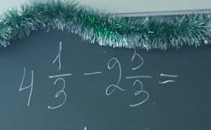 сначала избавляемся от целых частей(4*3+1=13 переписываем знаменатель, получается 13/3) тоже самое проделываем со второй дробью(2*3+5=11 переписываем знаменатель, 11/3) у нас выходит выражение 13/3-11/3=2\3