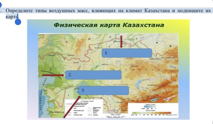 2. Определите типы воздушных масс, влияющих на климат Казахстана и подпишите их на карте