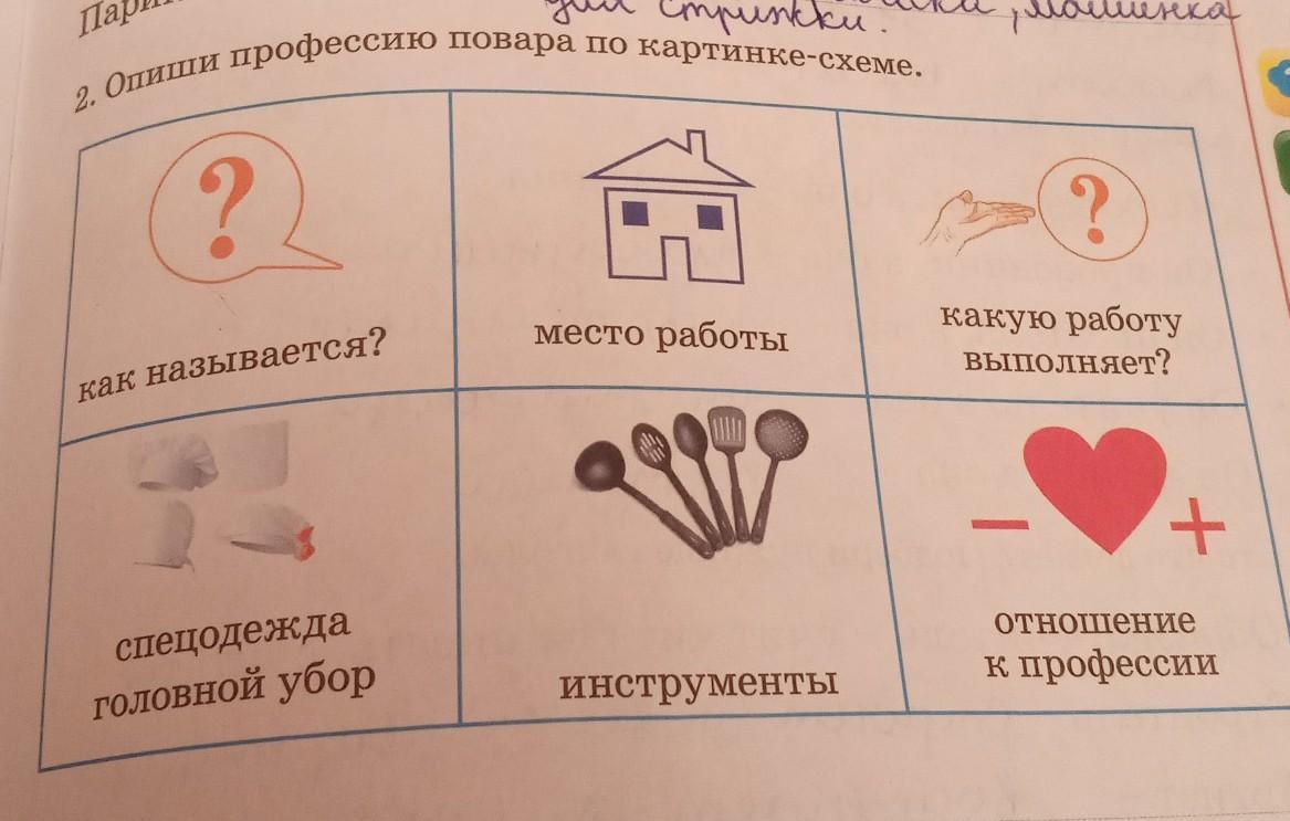 2. Опиши профессию повара по картинке схеме.