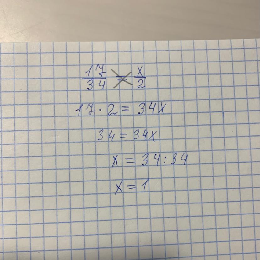 х=1 потому что 17 умножить на 2 будет 34 и 34 умножить на 1 будет 34
