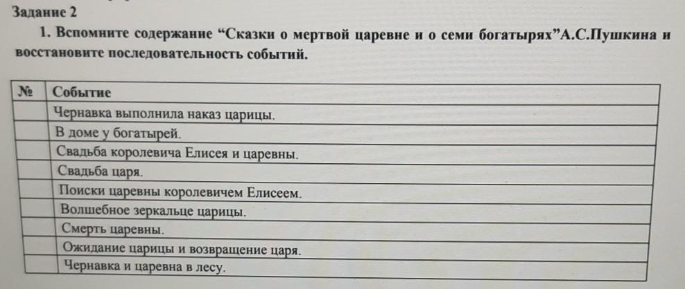 Восстанови события в правильной последовательности.