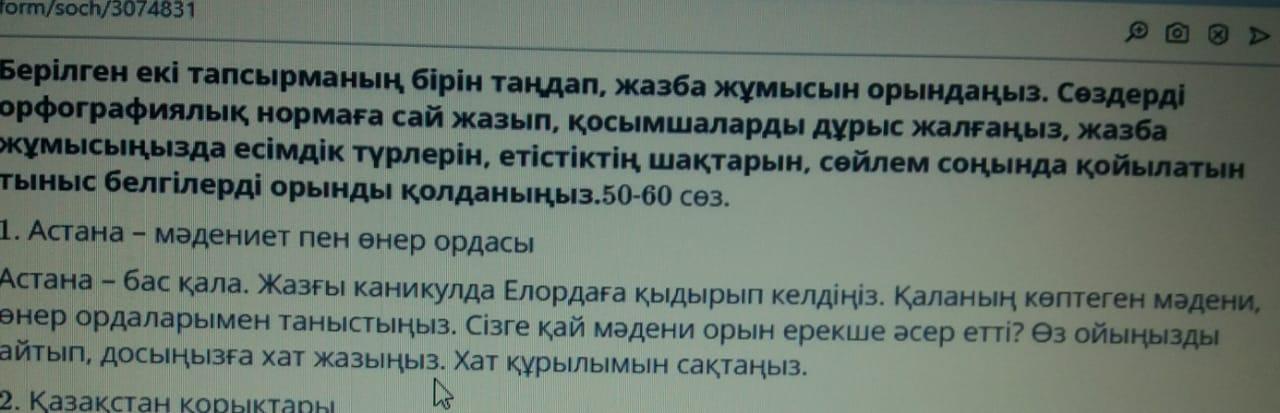 Астана – мәдениет пен өнер ордасы Астана қаласы – 1998 жылдан бастап мемлекетіміздің әкімшілік-саяси орталығы. Сонымен қатар мәдениет пен өнер, білім мен ғылым, озық технологиясы уақыт талабына сай дамыған қала. Астанада Қ.Қуанышбаев атындағы қазақ музыкалық драма театры, М.Горький атындағы орыс драма театры, Тәуелсіздік сарайы, Бейбітшілік және келісім сарайы, Президенттік мәдени орталық, Конгресс-холл, «Жастар» сарайы, «Қазақстан» концерт залы, қалалық филармония және баса да бірсыпыра мәдениет ошақтары бар. Елордамызда көптеген жоғары оқу орындары мен колледждер, мектептер мен балабақшалар, балалар 53 қалашықтары бар. Еліміздің бас қаласында спорттың дамуына да үлкен мән берілуде. «Қазақстан», «Алатау», «Астана» сияқты спорт кешендері, велотрек, мұз айдыны мен «Астана-Арена», Қ.Мұңайтпасов атындағы стадиондар соның куәсі.